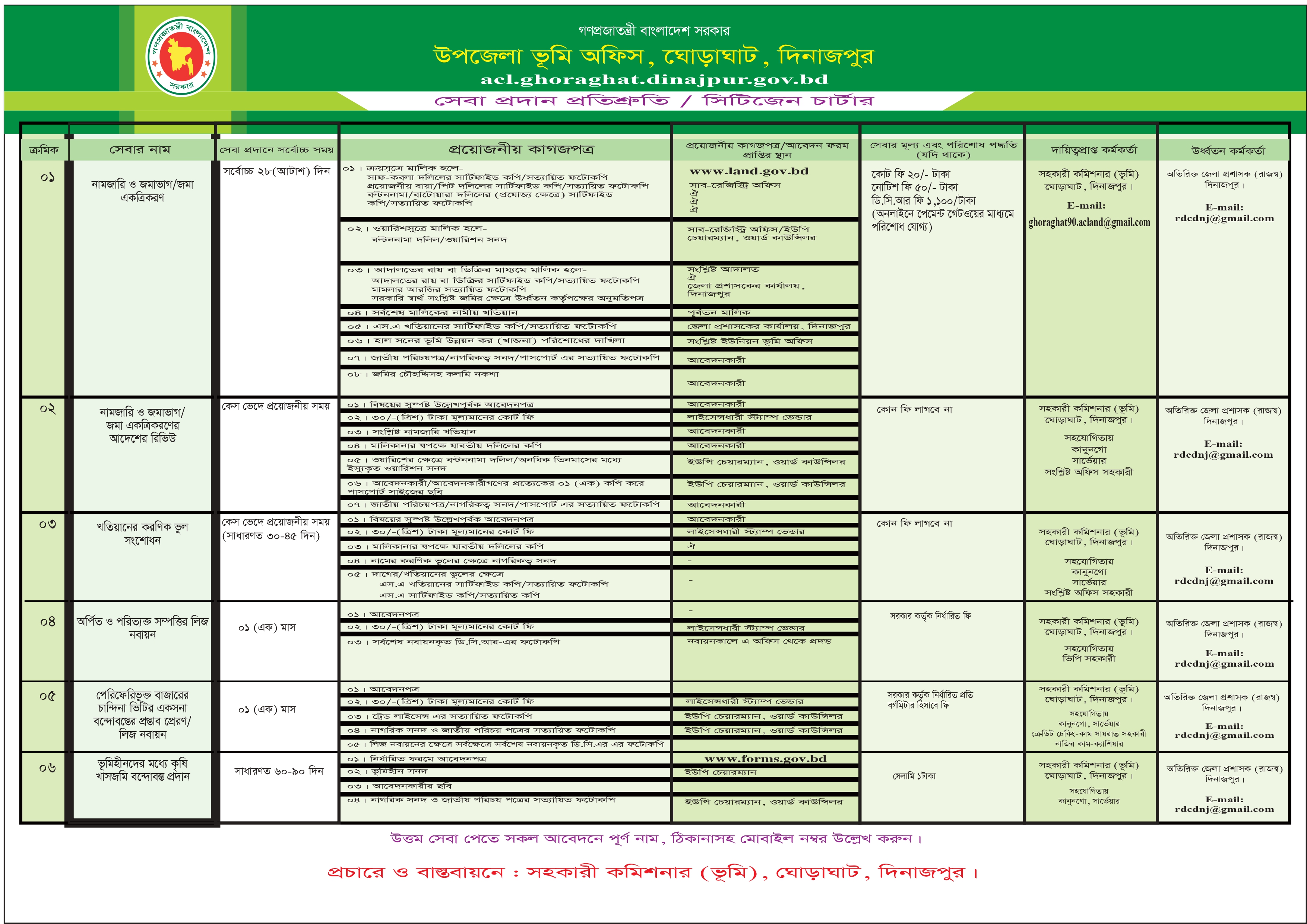 ০১ | নামজারী | ৪৫কায্যদিবস | সহকারীকমিশনার(ভূমি) ওইউনিয়নভূমিসহকারীকর্মকর্তা | জেলাপ্রশাসক |